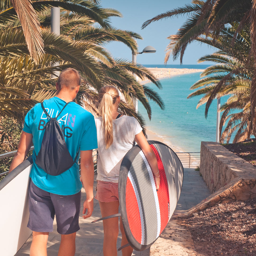 Viajamos todos los días a la playa que ofrece las mejores condiciones para el paddle surf y para las habilidades de nuestros alumnos.