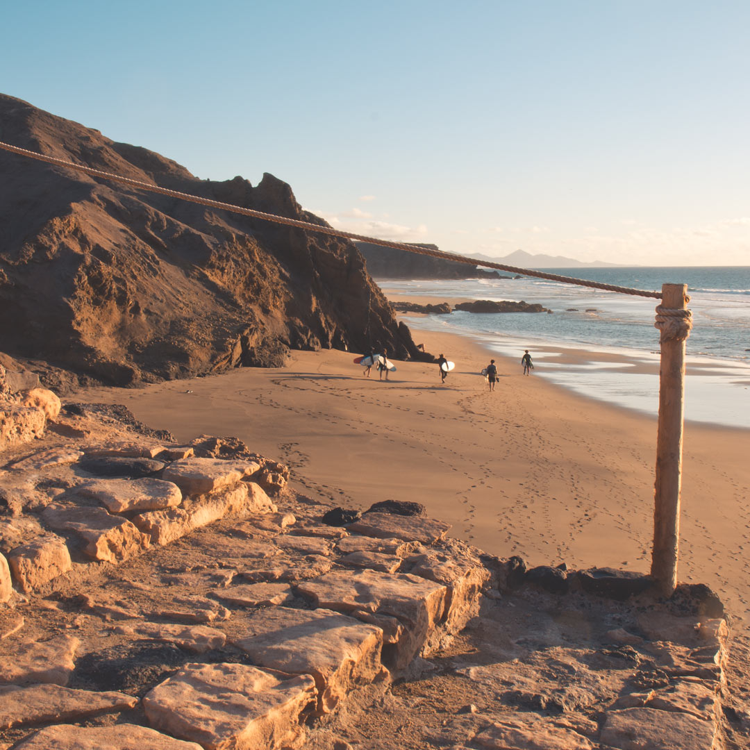 Si las olas son demasiado grandes en Bahía La Pared, merece la pena ir a Jandía, al spot de surf Cruz Roja. Cuando hay olas grandes en la costa oeste, a menudo rompen allí olas pequeñas y limpias.